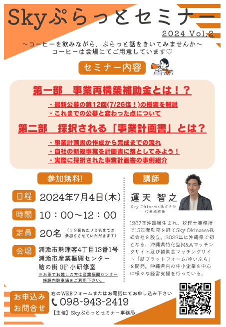 Sky ぷらっとセミナー Vol.2 ~コーヒーを飲みながら、ぷらっと話を聞いてみませんか~を開催します。